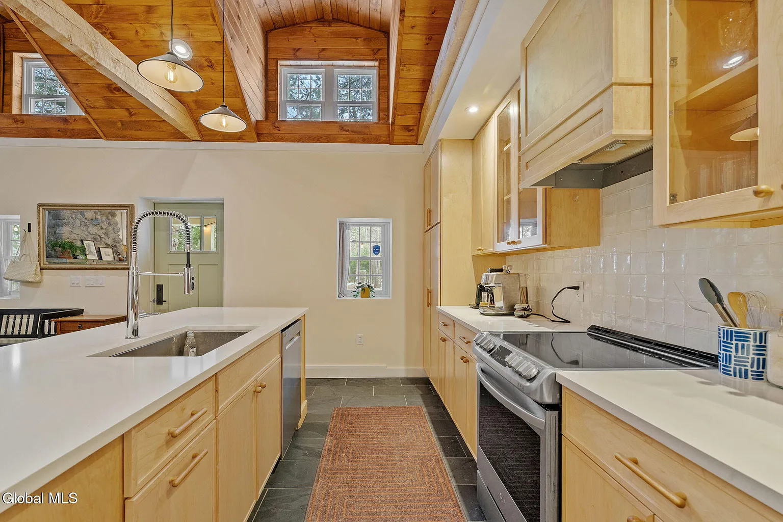Extensive renovations including new deck, siding, roof, windows and skylights. Custom bluestone pool patio and walkway. Full gut renovation of master bathroom and partial renovation of two additional bathrooms. Rewiring of electrical throughout entire home in sips paneling. Custom light fixtures throughout. Interior painting. Custom trims.